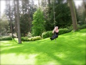Haar moeder, de chauffeur en begeleiders zaten buiten in de zon terwijl wij de kwasten in handen namen. Even later zagen we een aantal volwassenen als tarzan met het slingertouw door de bomen bungelen.